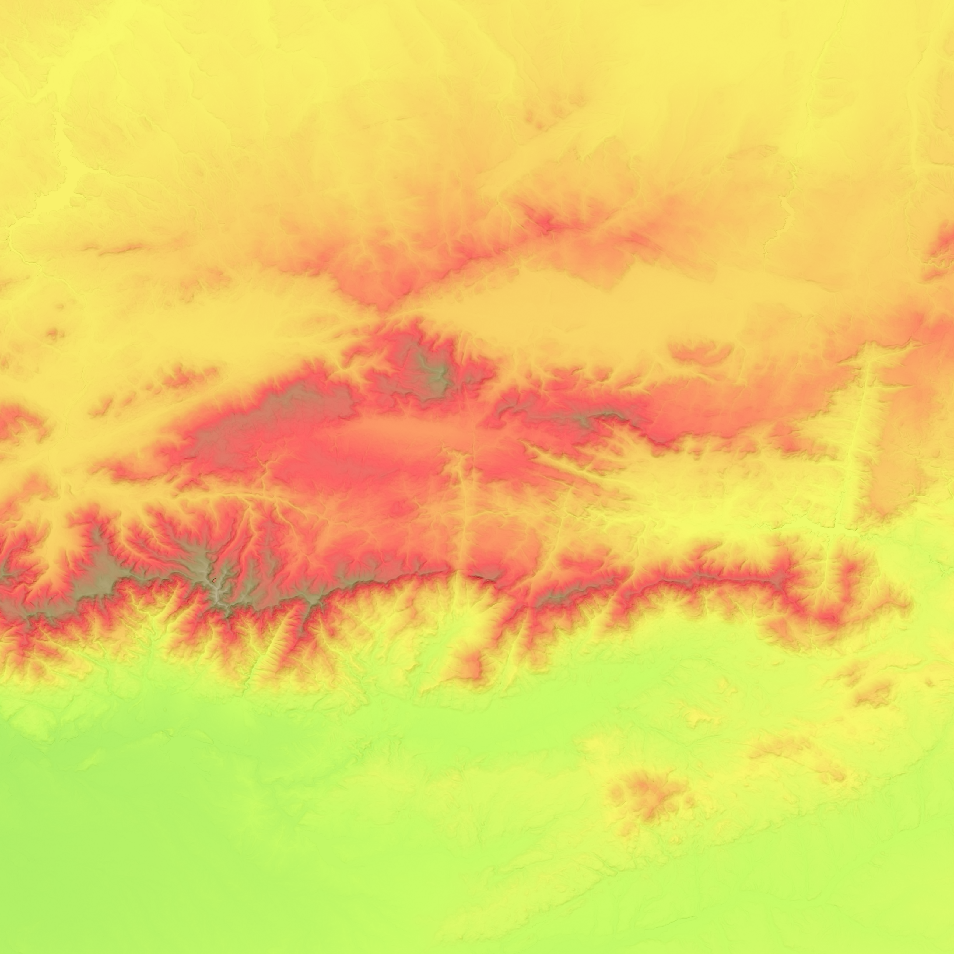 Then, we produce a PNG file (map.png), with less resolution, to make it manageable. The first two numbers (0 2522) are the real elevation range in meters, from the TIF file, to be translated to the second two numbers (0 255), range of the PNG file (256 levels). This file is mainly to check how things are going, because you can see the relief in it, but I won´t use anymore.